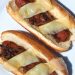 French onion soup inspired … caramelized yellow onion, imported Swiss gruyère cheese, John F. Martin & Sons Beef Franks on a toasted French brioche hot dog bun.