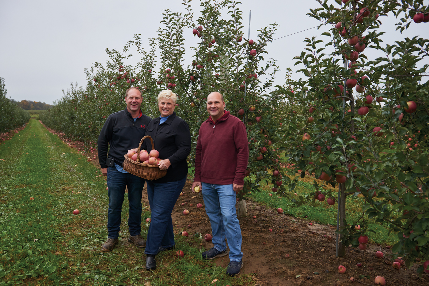 Deb with Cherry Hill Orchards owner, Corey McCleaf (left), and his brother, Craig McCleaf. Corey took ownership of the orchards in the spring of 2020.