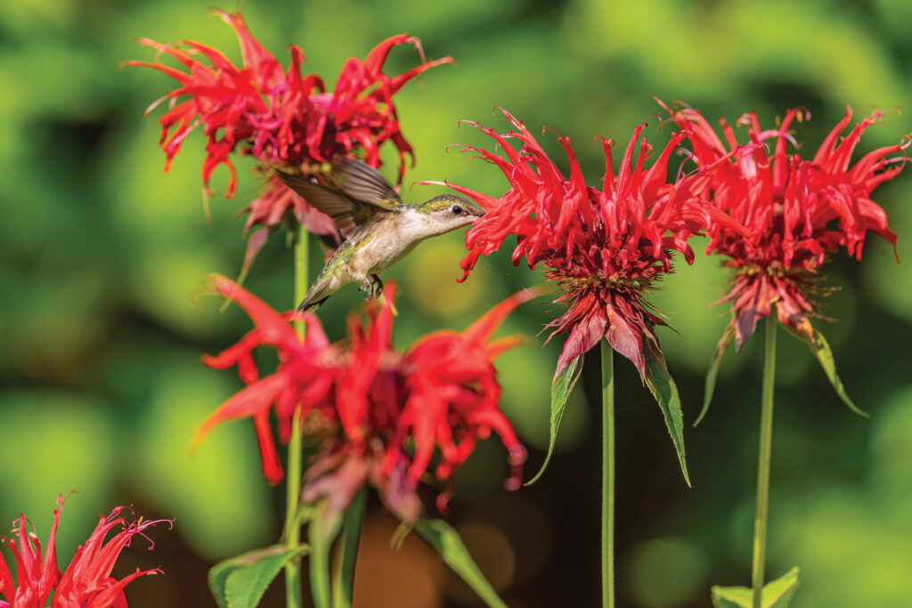 Bee Balm (Monarda didyma): A hummer magnet! Blooms May to July. Do not let dry out. Deadhead to prolong bloom. Needs good air circulation to avoid mildew.