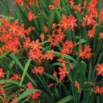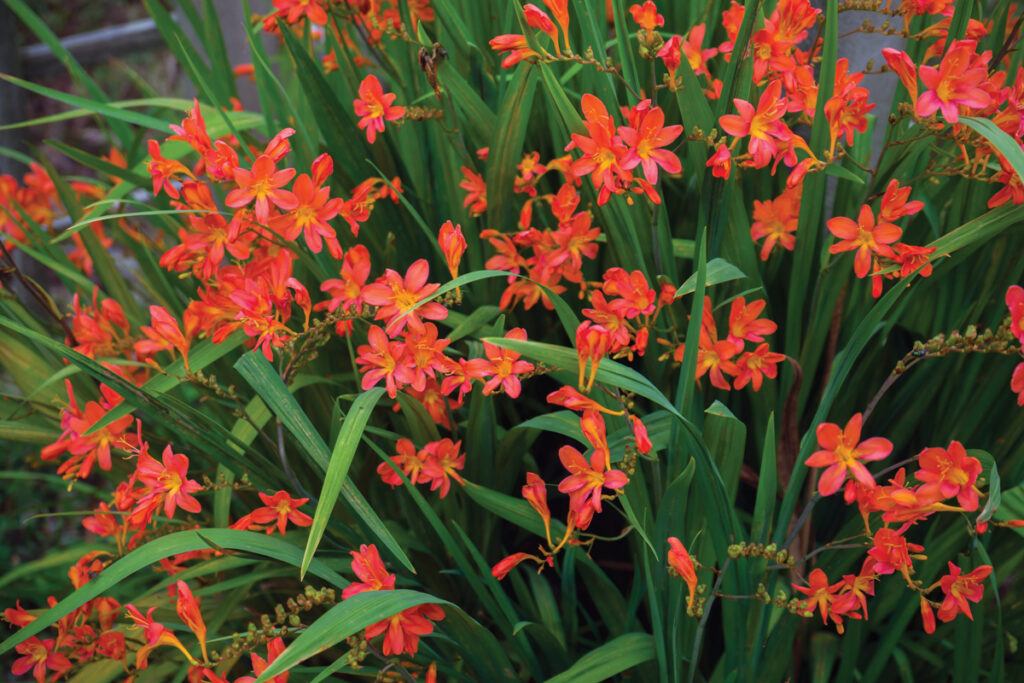 Crocosmia (C. ‘Lucifer’): Tall plant that produces exotic-looking orange-to-red blooms.