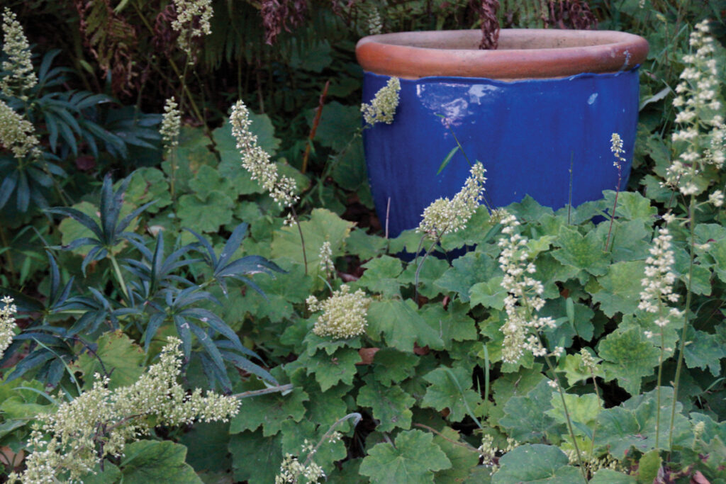 Coral Bells (Heuchera): Available in a wide range of (foliage) colors. Spring to late-summer bloom times. ‘Autumn Bride’ is a favorite, late-summer bloom. Part sun/shade.