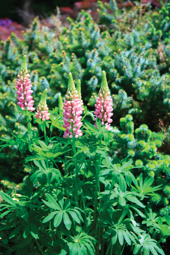 Lupines (Lupinus Russell Hybrids): This tall plant offers many colors. Blooms May into July. Full sun.