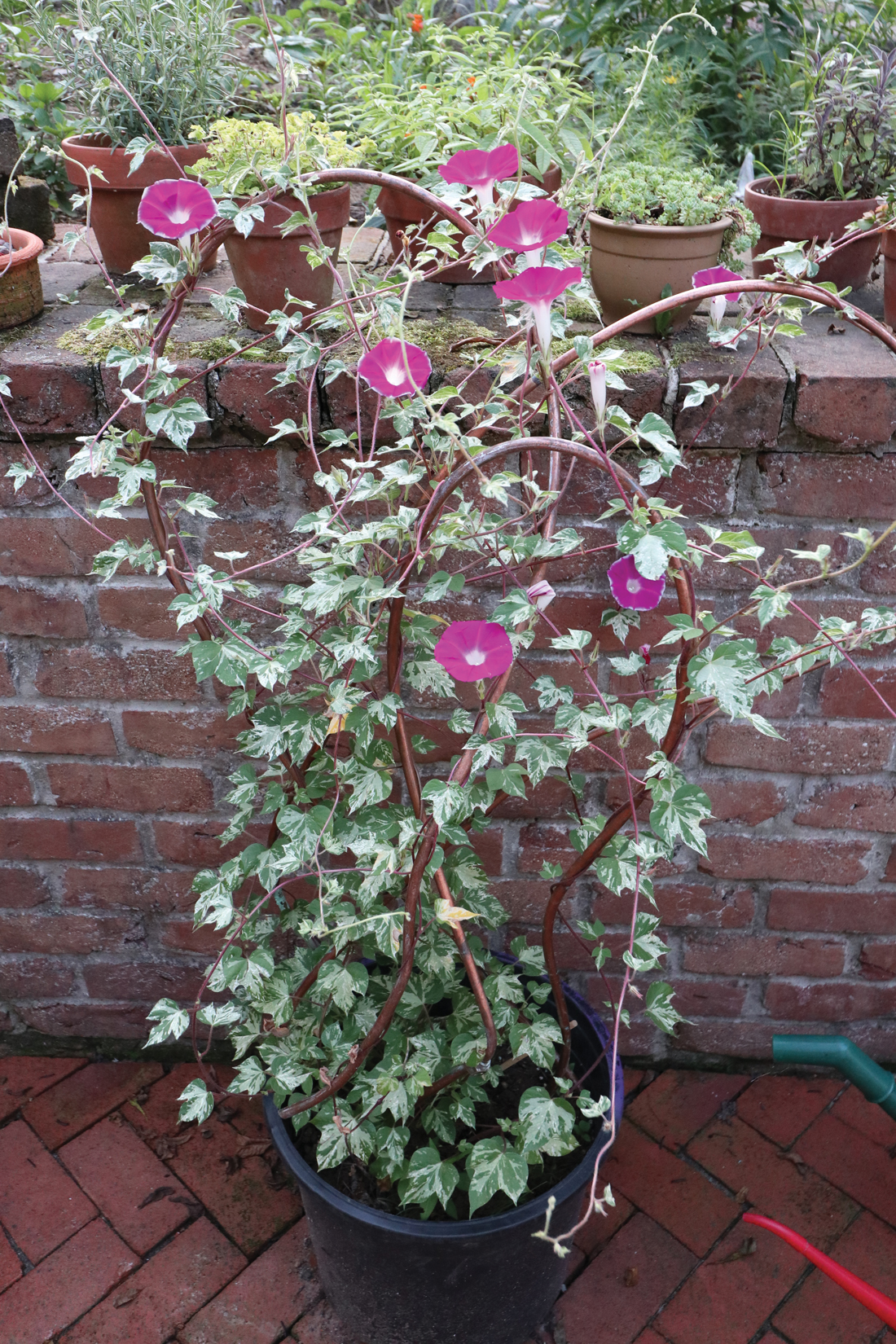 Morning Glory (Ipomoea): Annual. Flowers until fall. Easy to grow from seed. Needs support.