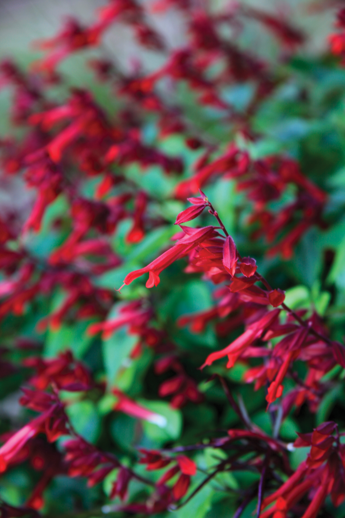 Salvia (Salvia): Many choices, both annuals and perennials. Blooms mid-to-late summer. Salvia greggii is my favorite. Deadhead for repeat blooms.