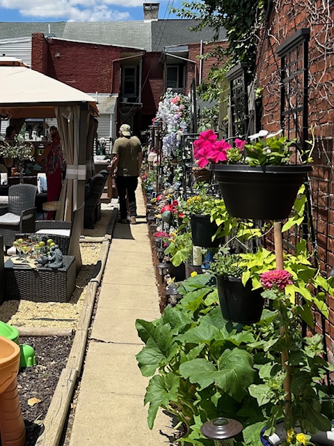 The Youngs’ backyard goes to prove that you don’t need acres of land to create a fun and relaxing getaway. They live in a rowhouse along Walnut Street that has a long but very narrow backyard. Those parameters, however, didn’t keep the family from creating a getaway that features two conversation areas, a children’s play area and a covered dining pavilion.