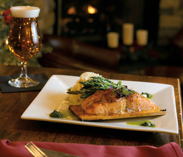 The dining area, which is located to the rear of the pub, is infused with warm light that spills in through the long windows and doors that open onto the large patio/deck. The deck has its own full-service bar and a fireplace. The main restaurant/pub seats approximately 80. The second level contains a special events venue with its own bar and seats up to 100 guests. It’s also used for overflow seating on weekends.