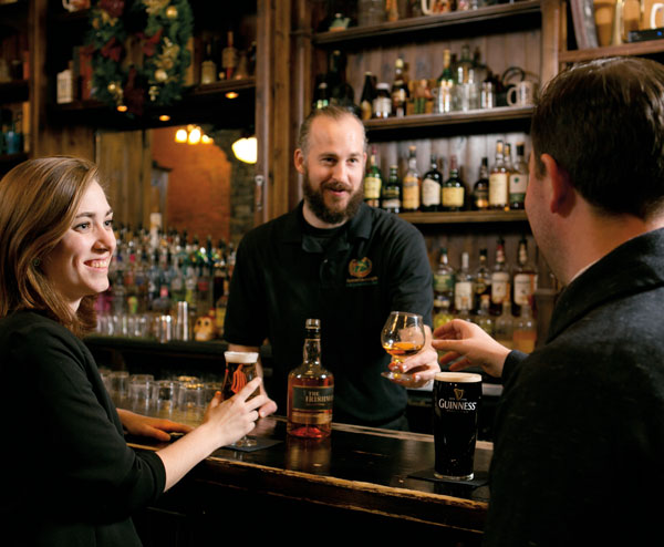 Of course, one expects to find a selection of spirits at an Irish-style pub, and Annie Bailey’s doesn’t disappoint. Josh reports there are 23 beers on tap – eight taps are dedicated to standards such as Miller, while the other taps rotate. There are also 70 bottled varieties available. Traditional Irish brews from companies such as Guinness (bartenders do the “perfect pour”), Smithwick’s Irish Ale and Harp Lager are star attractions, but there is also a variety of craft brews available. There are also nearly 60 whiskeys (including traditional and craft Irish whiskeys) to sample.