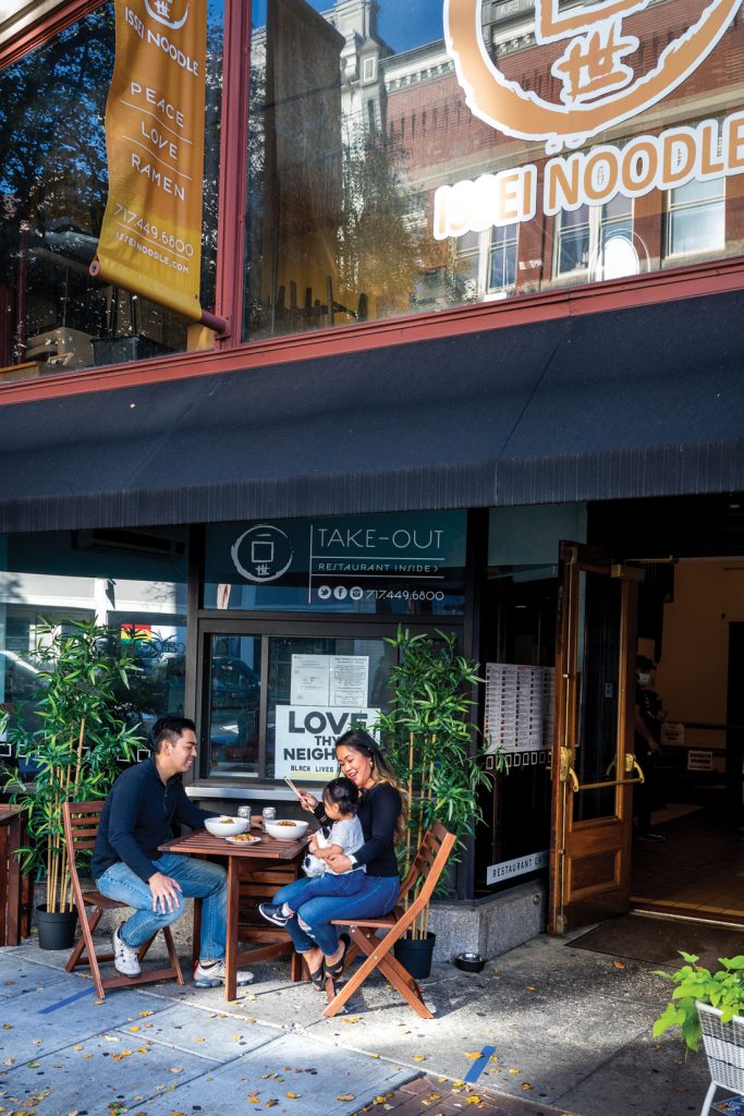 With the mid-March decree, the restaurant’s focus switched to take-out and delivery. Issei Noodle already enjoyed a brisk take-out business and relied on DoorDash for delivery service. In anticipation of added demand for delivery, it quickly expanded to include Grubhub and Uber Eats. The Phams also partnered with Commons Food Hub. The Commons Company, which operates several food and beverage businesses, including Prince Street Café and Passenger Coffee, manages the online service with curbside pickup available in either downtown Lancaster or Lititz. Items are from local purveyors and include a variety of perishables, dry goods, prepared food and even some libations.