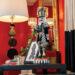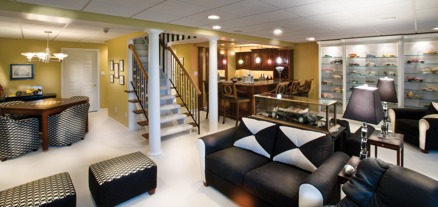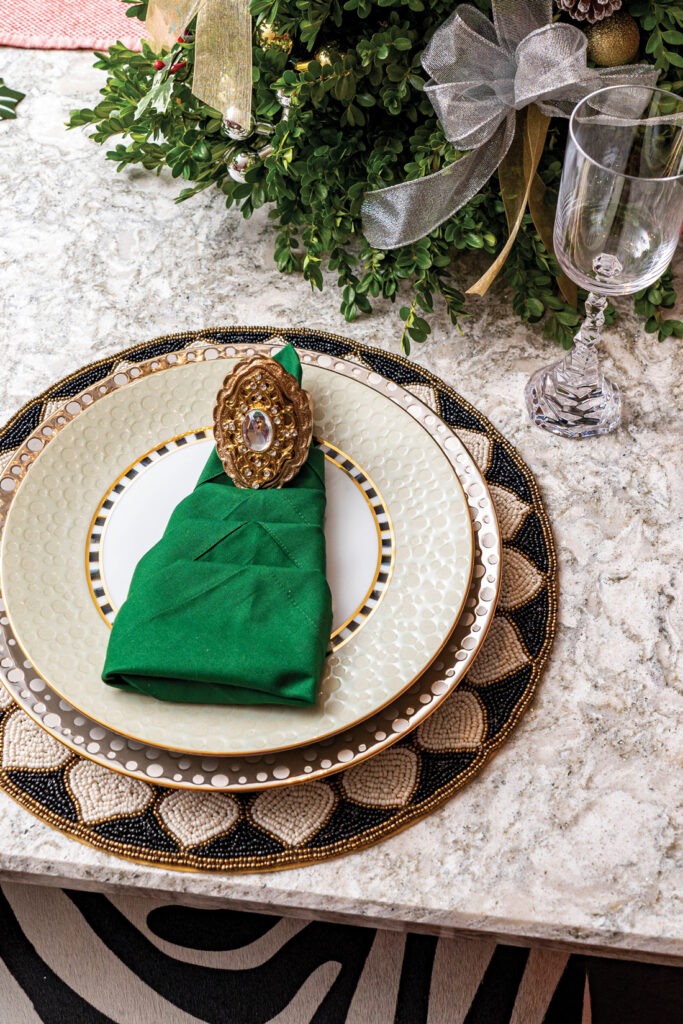 The enamelware would ultimately inspire the color scheme throughout the living areas. Carolyn’s love of animal print also figured into the design. “It’s a little bit like living on the wild side,” Carolyn said of her home’s décor. (The model cars were beautifully displayed in the lower level of the house.) The only departure was her bedroom, where traditional furnishings and a champagne color scheme created a serene getaway.