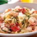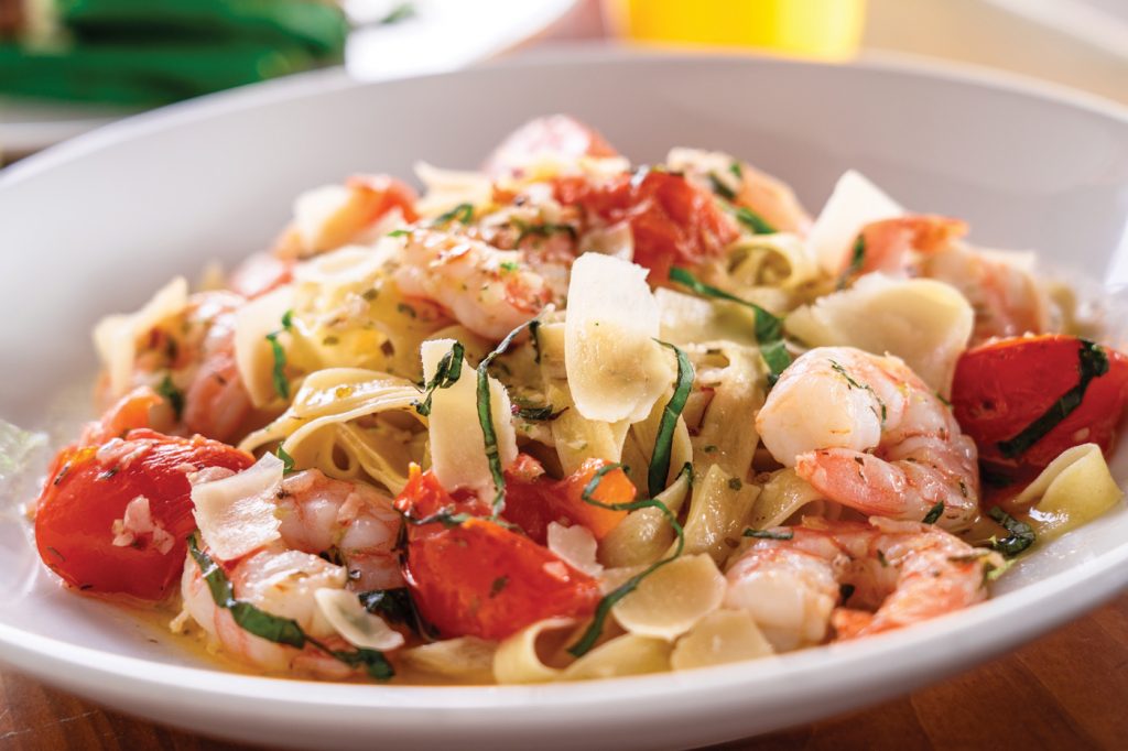 Rampi Scampi: jumbo shrimp, tomatoes, garlic ramp butter, basil, white wine and house-made fettuccini.