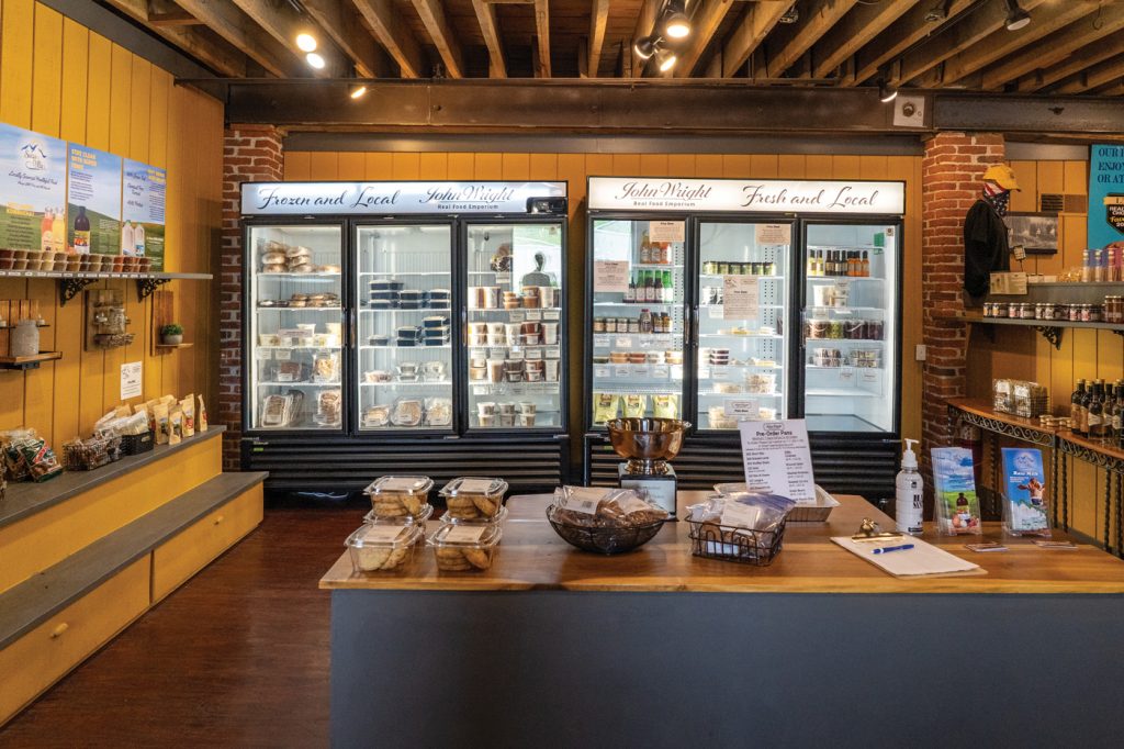 The kitchen staff’s talents extend beyond cooking. Beef for burgers is ground in-house, while sausage is made in-house, as is the sauerkraut. “We work with the farmer who raises the pigs,” Jim says. John Wright’s chefs also create desserts, ice cream and pizza dough in-house. The newest addition is a pasta machine, allowing all of the restaurant’s pasta to now be made from scratch in-house. “Over the past year, we’ve adapted and changed so we could continue to serve our customers but also keep our loyal staff working. When we purchased the pasta machine, we also pursued certification as a food manufacturer and we started an off-premises catering company,” Jim explains.