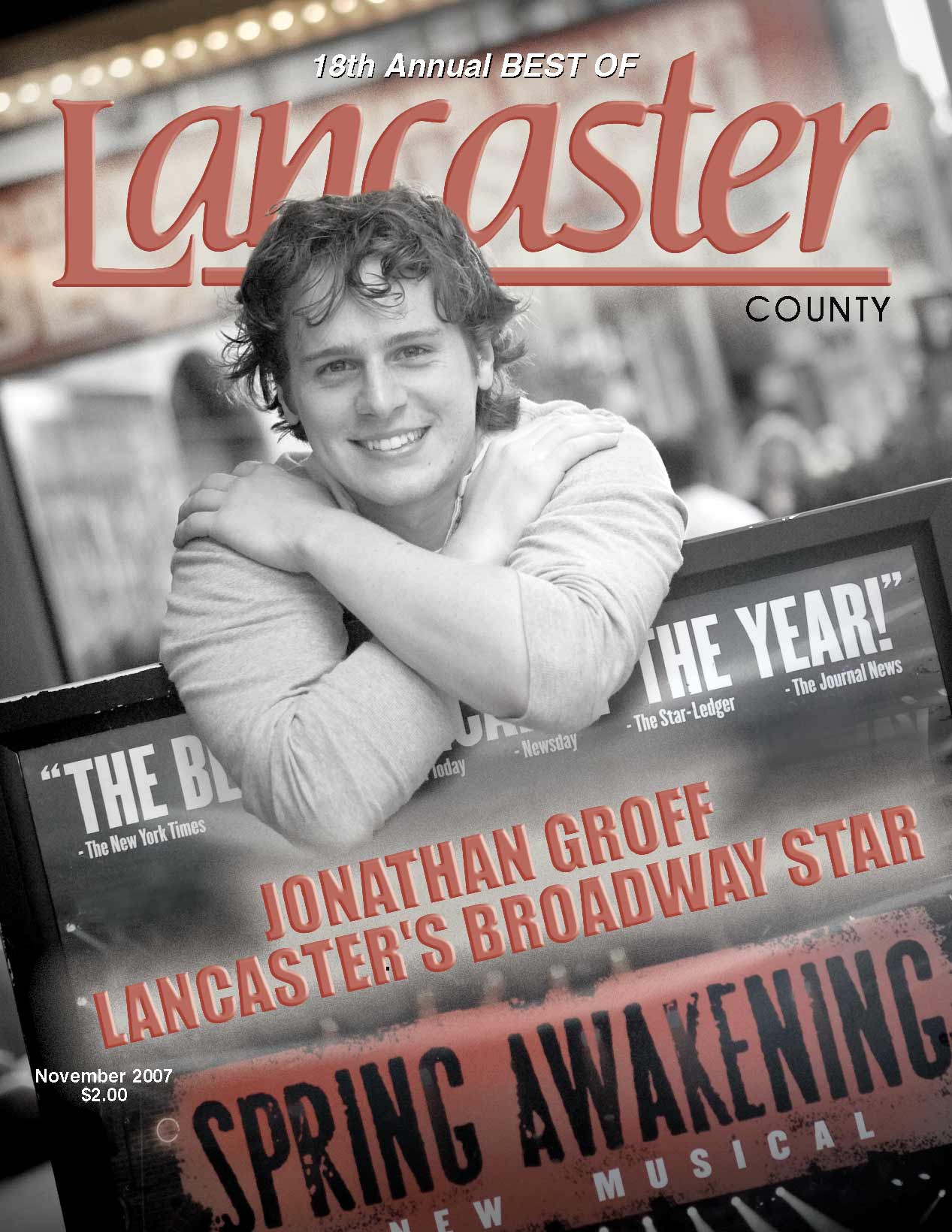 Reading about Groff’s Thanksgiving visit spurred memories of the time he posed for our Best of Lancaster cover (November 2007). At the time, he was the toast of Broadway, thanks to his role in the hit show, Spring Awakening. Three of us took the train to New York, jumped in a taxi and made our way to the Eugene O’Neill Theatre, where the show had moved after selling out its entire run (plus two extensions) at the Atlantic Theatre.