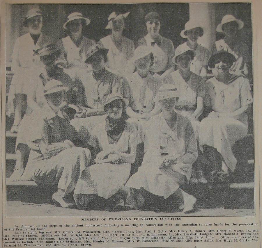 What a difference 100 years makes! An archival photo of the Wheatland Foundation Commmittee in 1936, and today’s members, Christine Johnson, Elizabeth Reidenbach, Hannah Funk (2023/24 president), Teresa Marino.