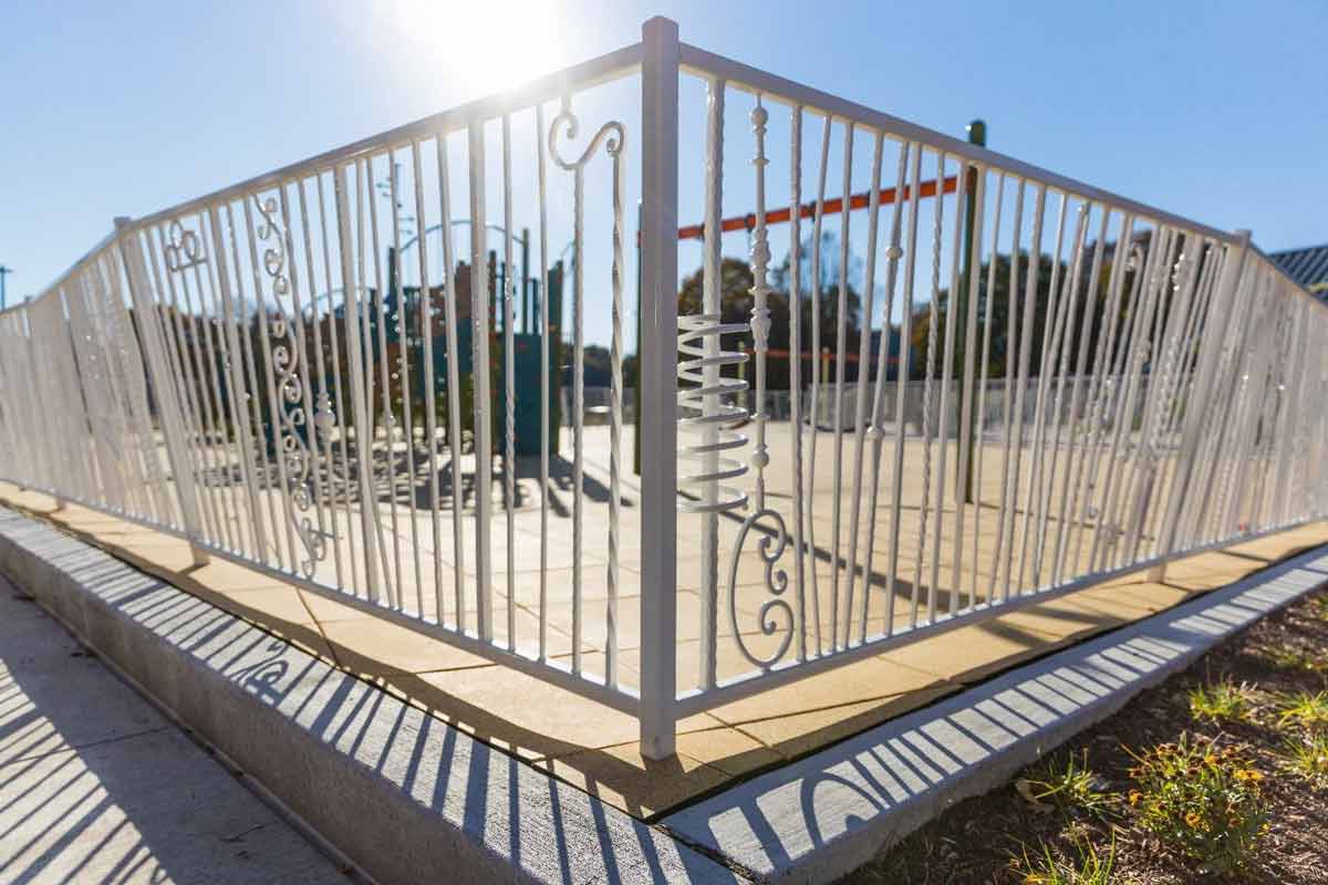 Structural artist Mathew Geller, selected by the park’s neighbors, has been connecting with the local SoWe community and collaborating with RGS landscape architects to renovate the grounds of the park since 2018. Geller, in conjunction with Shrock Fabrication, created a unique fencing installation around the new playground section by incorporating upcycled scrap and parts in a wavy formation that invokes a sense of motion.
