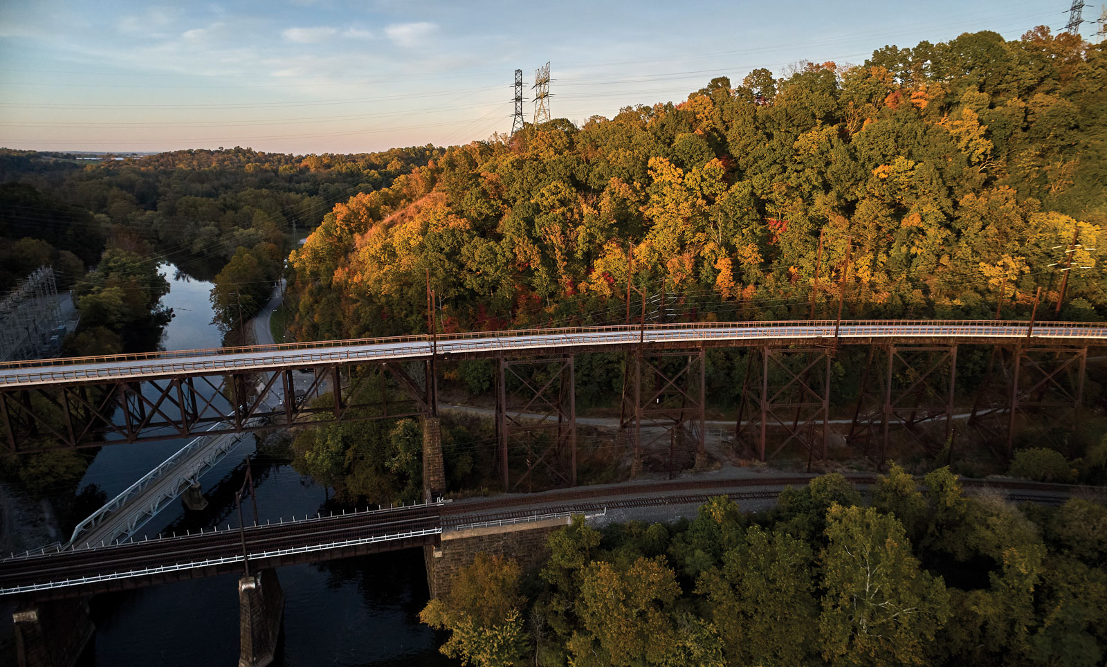 When the upper 5-mile section of the Enola Low Grade Trail opened in 2013, restoring and readapting the bridge became a priority. Thanks to municipal, state and federal funding, as well as private donations, the goal became reality last June, when the $9 million project, which features concrete and glass decking, officially opened to trail traffic. Users marvel at the views the bridge offers, including the rivers, woodland, the Safe Harbor Dam, York County, railroad traffic and the famous petroglyph-covered rocks that dot the Susquehanna.