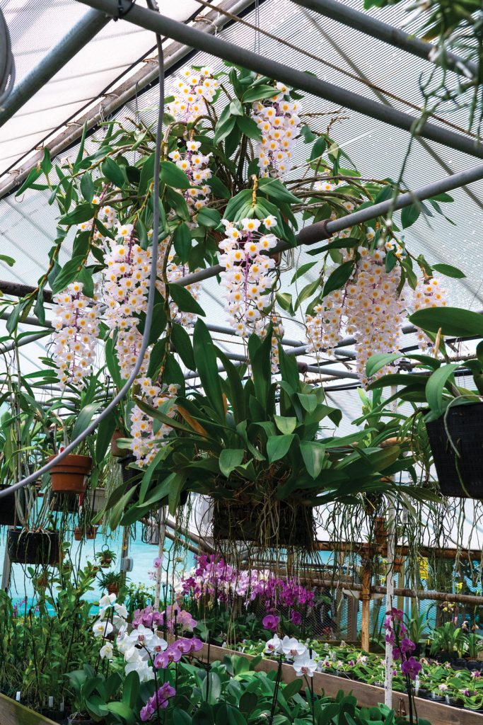Their allure is attributed to flowers that bloom in a kaleidoscope of colors, exotic fragrances and, for avid collectors, lineage. “Some of our clients have sizable collections, while others have heirlooms they inherited,” John says of the devotion that is paid to them. “People who board their orchids with us will stop in to visit them and check on how they are faring.”