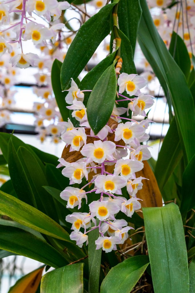 There’s also the social aspect of orchids. “We’ve met people and have made connections with growers from all over the world,” John says, adding that the grower connections enable Little Brook to stock the latest hybrids. “This is a close-knit industry,” he says.