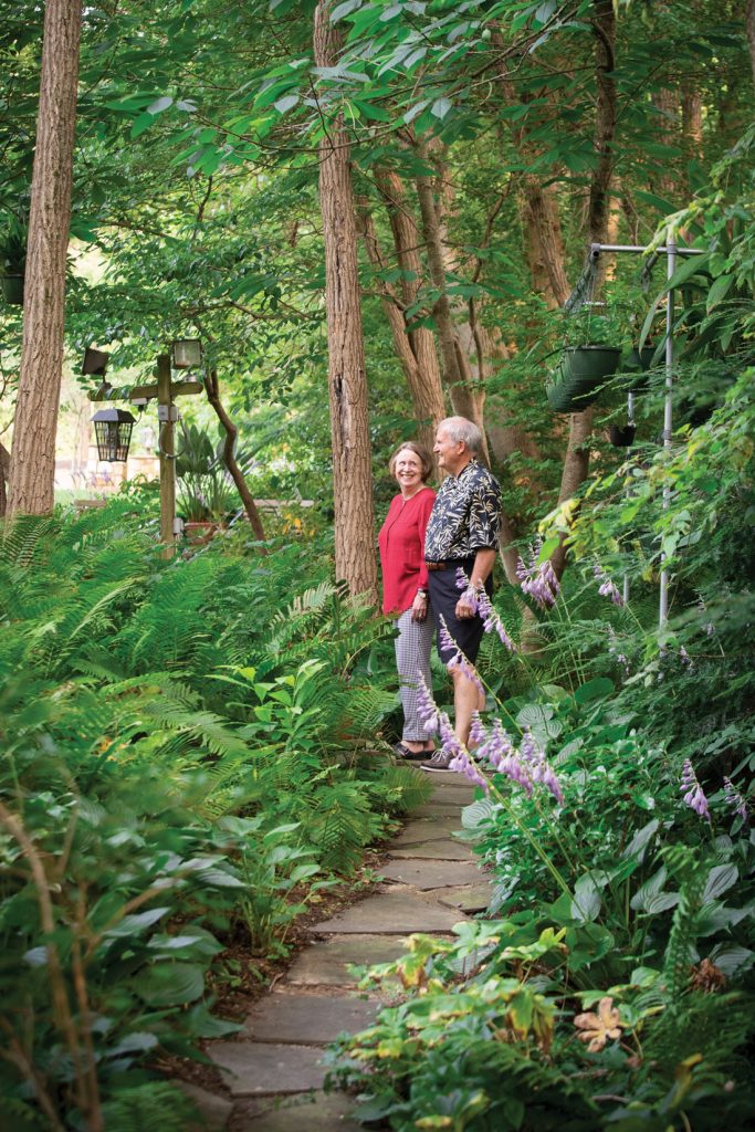John and Carol take an evening walk through the wildflower preserve that spans the back of their property.