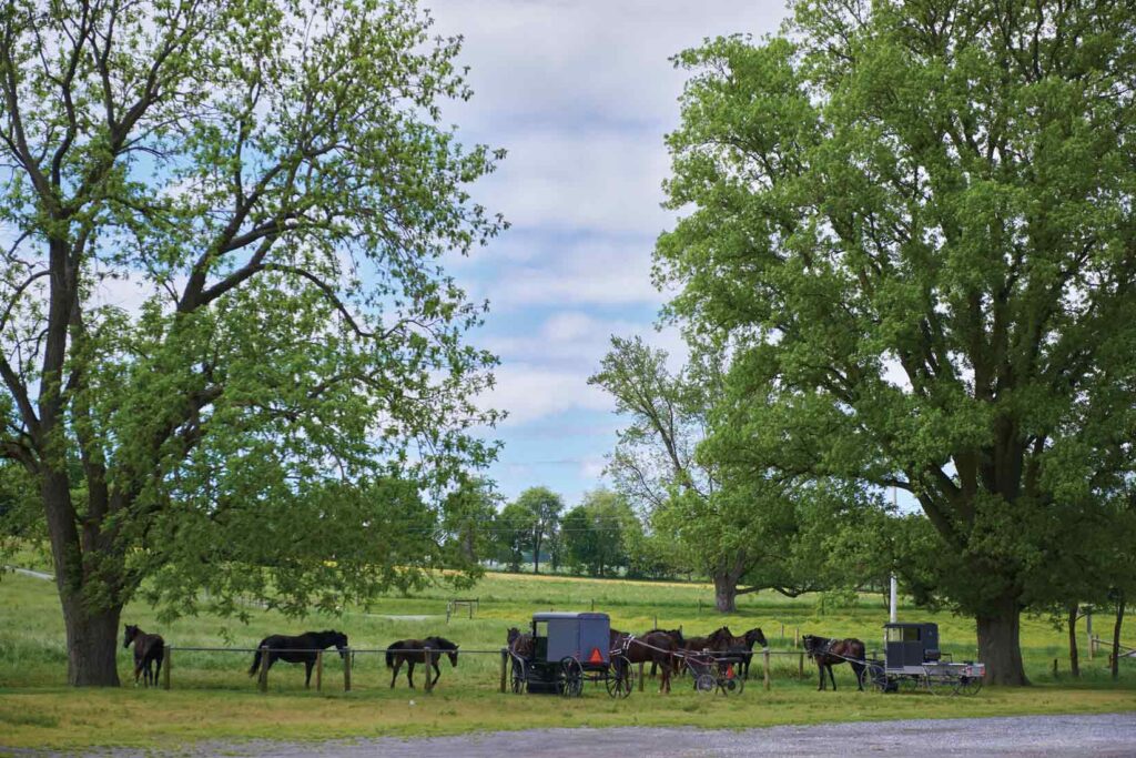 As seen in the parking lot of the Leola Produce Auction, horses from the neighboring farm strolled over to greet equine visitors.