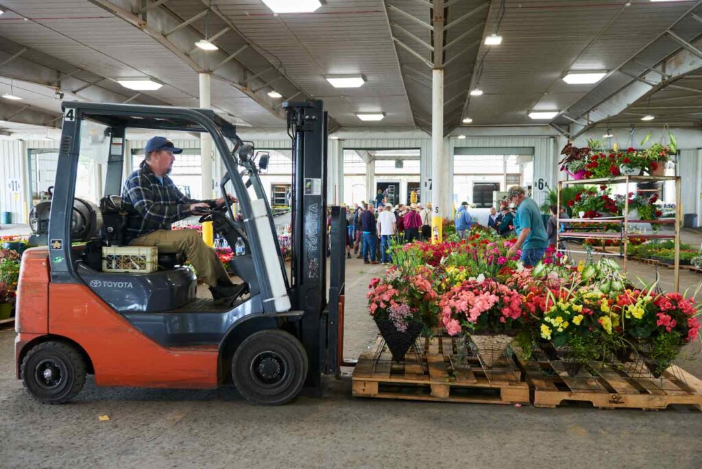 The auction was a busy place the day we visited. The flower selection was amazing and the produce provided evidence that summer was on its way. Skid loaders whirled around the complex, moving product in and out. The Leola Produce Auction was the first of its kind to open in Pennsylvania; its success inspired similar auctions to open in the county, across the region and throughout the country.