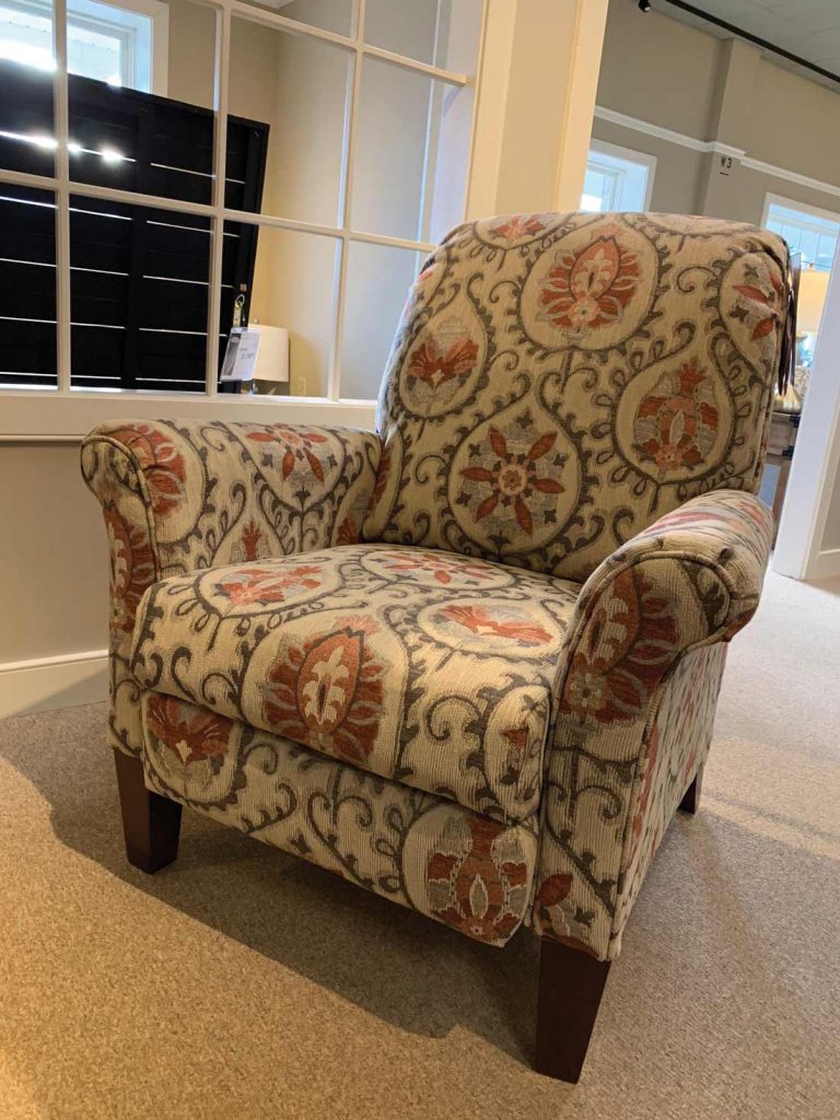 What caught my eye is a style Interiors Home is calling “refined country.” The styles and fabrics are so refreshing and welcoming that I’m ready to completely re-do my living room. I also loved the look of mirror-fronted cabinets and dressers. I did lose control and treated myself to a Flexsteel recliner as a birthday present.