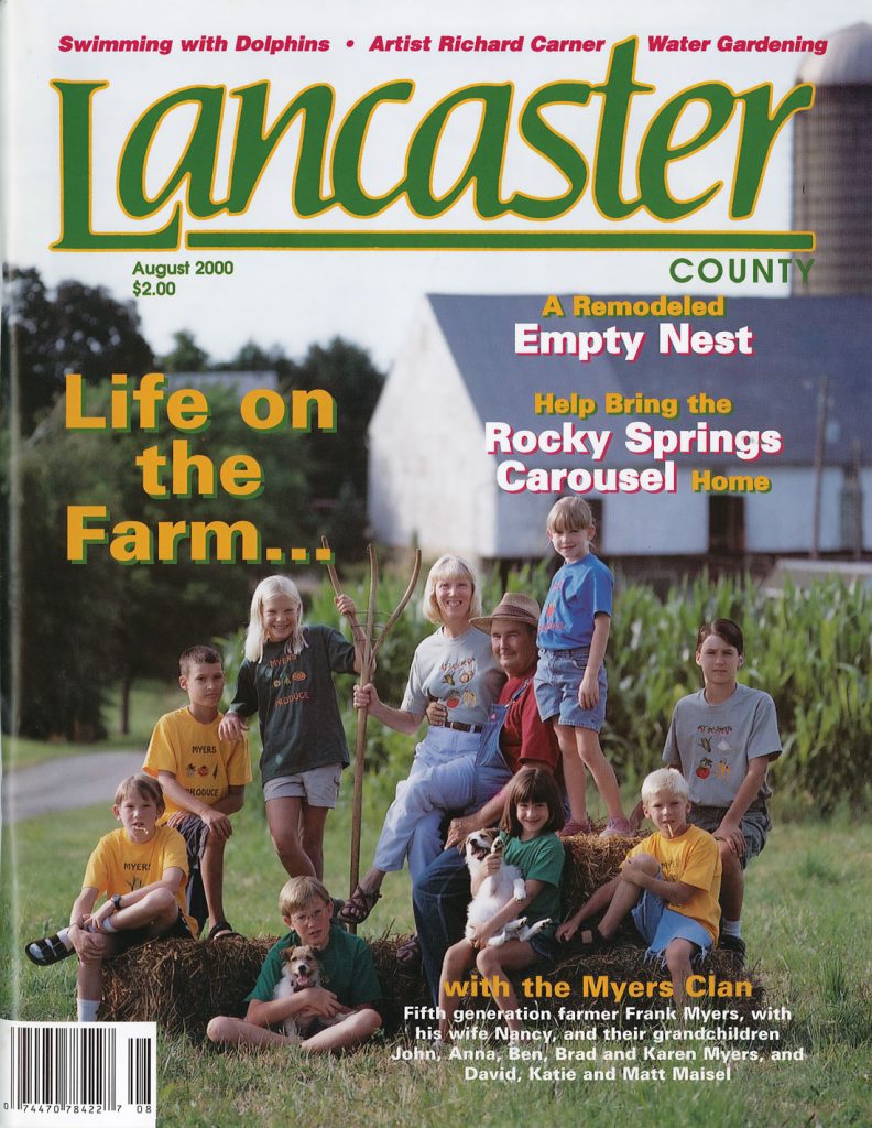 My travels often took me across Long Lane in Pequea Township. During the summer of 1999, I kept tabs on a large plot of sunflowers that was growing beside a roadside barn. Then, I discovered the farm’s produce stand and its famous Ambrosia corn. I also couldn’t help but notice a small field on the other side of the driveway that was ablaze with color, courtesy of a multitude of flowers. The plot was a novel idea at the time – customers were welcome to cut the flowers and create their own take-away bouquets. “We get tourists who stop and ask if they can take pictures of the place,” noted John Myers. “I guess they think it’s a quaint way to live.” I was invited to take pictures, as well, which ultimately led to the idea of doing a story about the Myers farm. We scheduled it to appear in a summer 2000 issue.