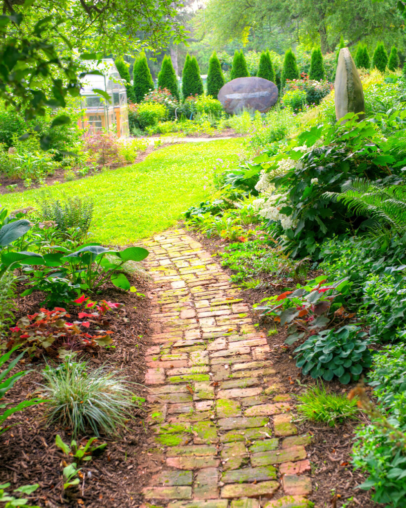 Stacy goes outdoors as soon as the weather cooperates. If it’s a tolerable day in February, she is outside cleaning up beds, checking on things in the greenhouse and making plans for the coming season. Fall 2021 was devoted to creating a stone-lined path that leads to a new patio outside the greenhouse.