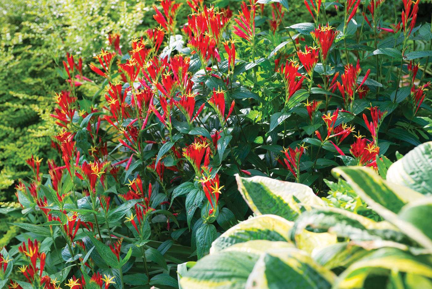 The native plant, Indian pink, with its contrasting colors of red and yellow, is one of Stacy’s favorite shade plants.