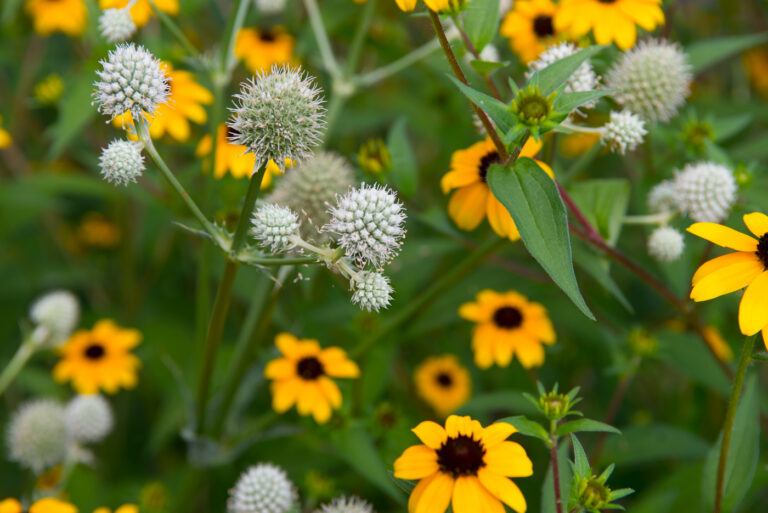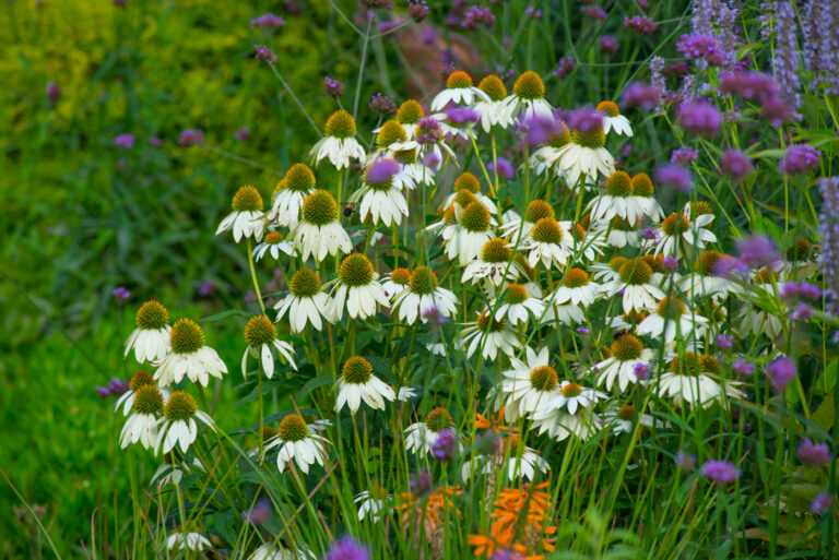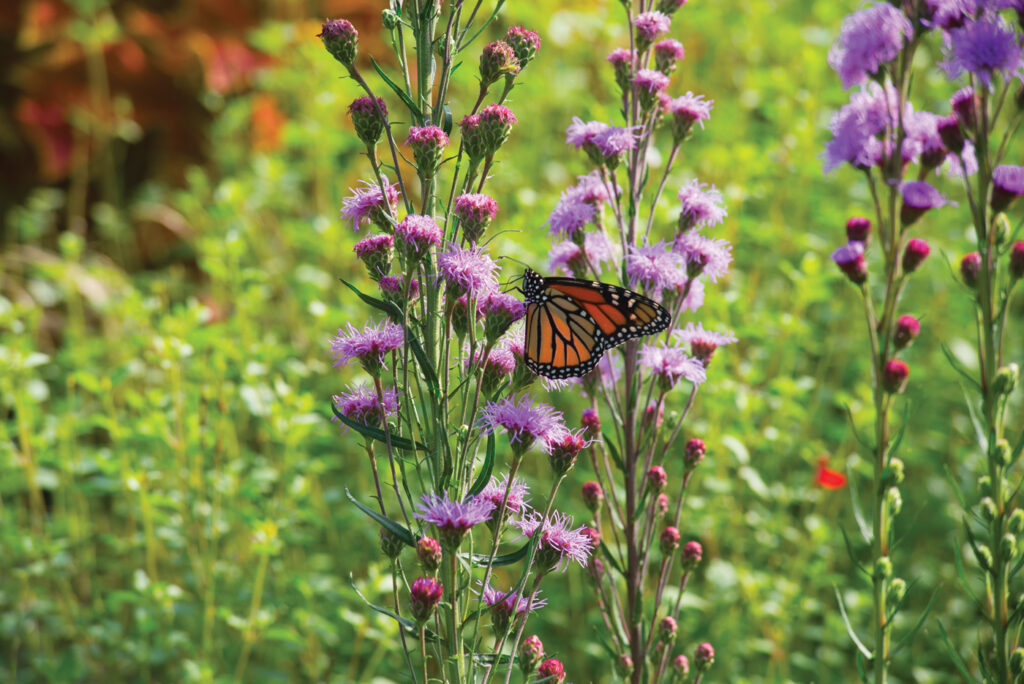 Stacy concentrates on including plants – such as liatris – that benefit pollinators. “The monarchs are constantly on them,” she says.