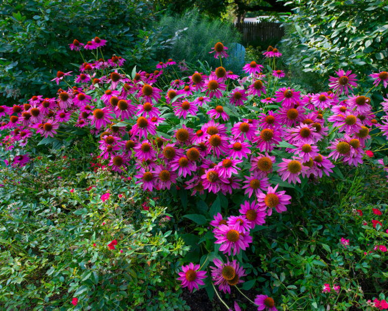 Like most gardens, theirs is a work in progress. “I’m always doing something,” she says of her goal to reduce the scope of the lawn and replace it with beds filled with plants that attract birds, insects and pollinators such as bees and butterflies. Thus far, she’s probably eliminated 60% of the lawn. “I keep eyeing the front yard,” she admits. “I’d like to do more there.”