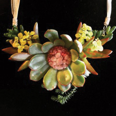 Succulents continue to be an integral part of floral design. Victoria likes to incorporate them into bouquets and boutonnieres. “They make delicate floral elements look even more beautiful,” she remarks. She also utilizes them to create what she calls “living heirloom jewelry.” And, they make for wonderful take-home gifts for guests, as they can be potted or planted. “The sharing aspect is what helped to make hens and chicks so popular,” she notes.
