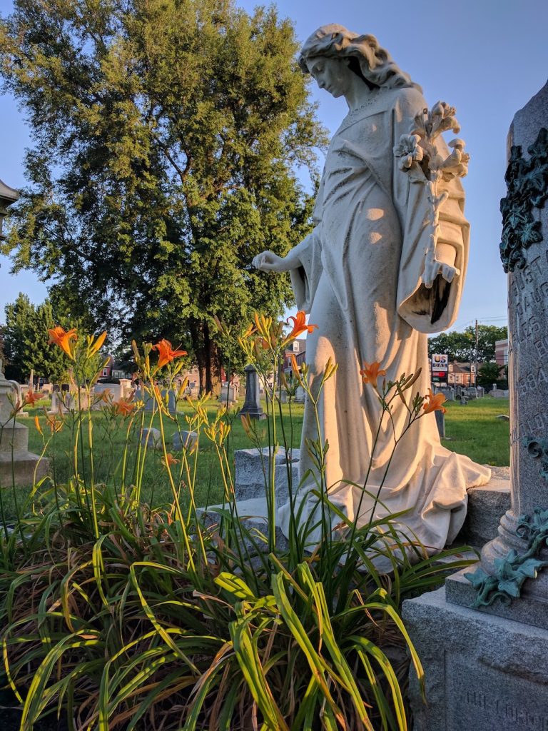 However, Cynthia Douts Roth debunked the story of Augusta’s death in a 2009 journal for LancasterHistory. Cynthia found that Augusta married Stanley Hart Tevis on May 3, 1905, in her parents’ Marietta Avenue home. Afterwards the couple moved to Philadelphia. Just after their first wedding anniversary, Augusta fell ill with typhoid and died at the age of 21. Augusta’s death may not be as dramatic as the legend claims, but the eerie statue and the story of a young life cut short – symbolized by the broken column in her monument – still make for a chilling story.