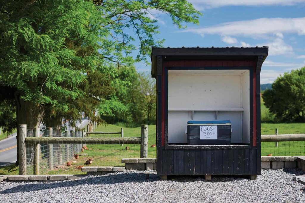A farmstand along Brethren Church Road in Leola offers farm-fresh eggs that are kept cool in an ice chest and are sold on an honor basis. It can’t get much fresher than this! The free-range chickens roam the field behind the farmstand.