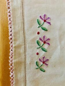 Being crafty has always been part of my life. Maybe it has to do with my generation (boomer) or the fact that I had very talented relatives on both sides of my family. Credit especially goes to my grandmother, Elizabeth Ritchey, as she embroidered everything in sight, including table linens, sheets, pillowcases and doilies. She was also a wiz at darning socks, replacing buttons, repairing rips and tears and sewing patches on the knees of our pants. Incredibly, I still have some of her handiwork. She taught me how to embroider and bought me my first sampler to complete, which I also still have. To this day, I remember how to do a French knot.