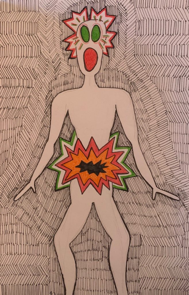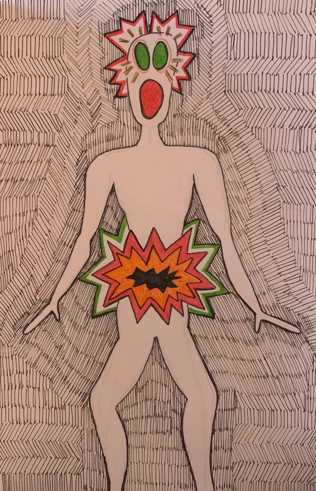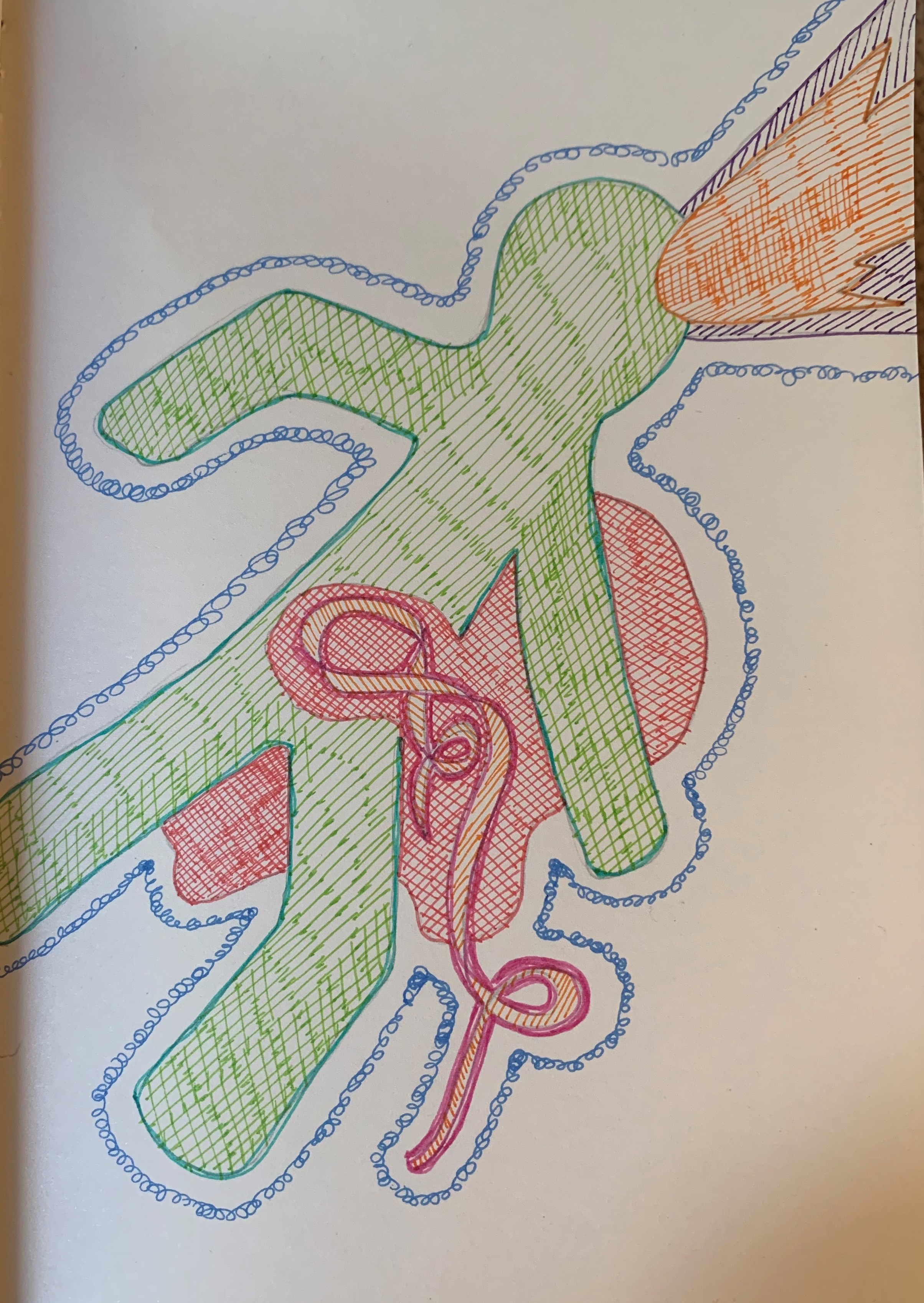 I am typically a mixed media artist working somewhere between 2D and 3D work. My illness coupled with quarantine has kept me away from my studio, so these sketchbook images like these, made using fine felt tip pens, have been my art therapy outlet.