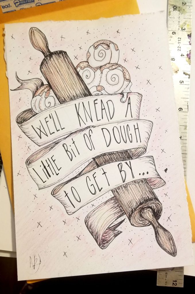 I’ve been taking some time on occasion over the last several weeks to do quick doodles and take a break from all the noise of the news cycle and constant screen-time. I’ve been slowly making a small series of what I’m calling “Quarantimes” cards and sending them to friends. I’ve chosen to be very informal and unstructured with these pieces to help keep the process as relaxing as possible. No expensive tools or supplies or strict measurements allowed. I’ve just been using whatever I have on hand as medium and subject. The card pictured is one I made for a baker/cake decorator friend and features a mutually loved song lyric and play on words (Mewithoutyou).