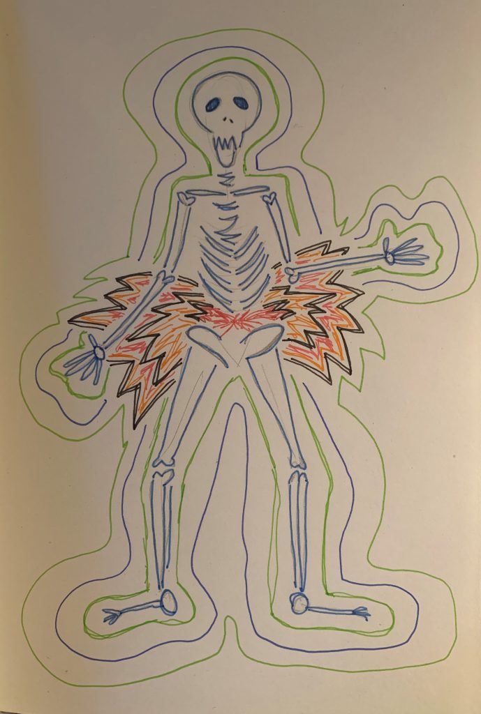 Note from the artist: I picked up this little sketchbook when I ended a relationship right before the pandemic started. I can’t put it down! Doodling is so relaxing and fun. It’s just for me! I can do whatever I want – no judgement – no deadlines – A pure creative outlet!