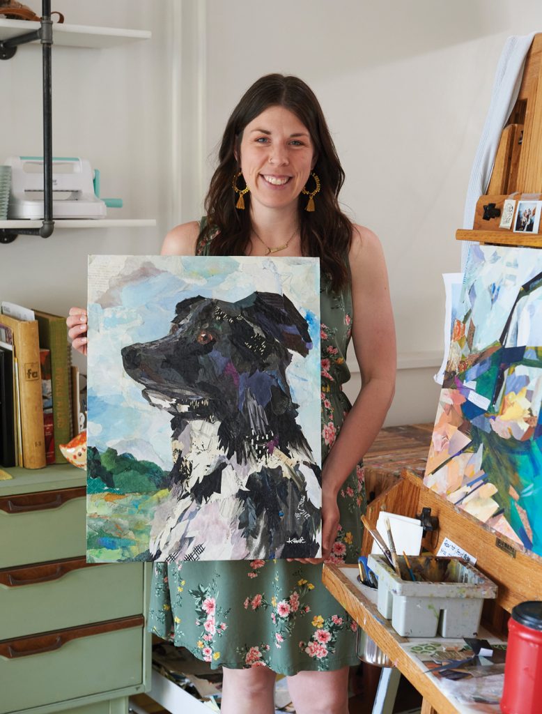 Friends connected them with a building near REO Manheim Marketplace that dates to 1910. Jason spearheads the graphic design and web development aspect of the business, while Katherine, who is a graduate of Pennsylvania College of Art & Design, has her fine arts studio in the front room, where she creates mixed-media collages using everything from paper to greeting cards, newspaper print, sheet music and magazines in her designs. “Paper is my thing!” she says.