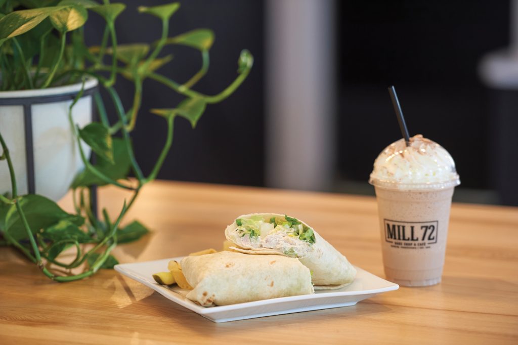 Located in a “slice” of Manheim history – the REO Manheim Marketplace – Mill 72 took over the space that once served as a showroom for an Oldsmobile dealership and a garage. Now, it’s a light-filled café that, according to Melanie, invites guests to “connect, unwind and enjoy delicious food.” By connecting, she means face-to-face or virtually. The dining area that mimics a living room – fireplace and comfy furniture – is always filled with guests.
