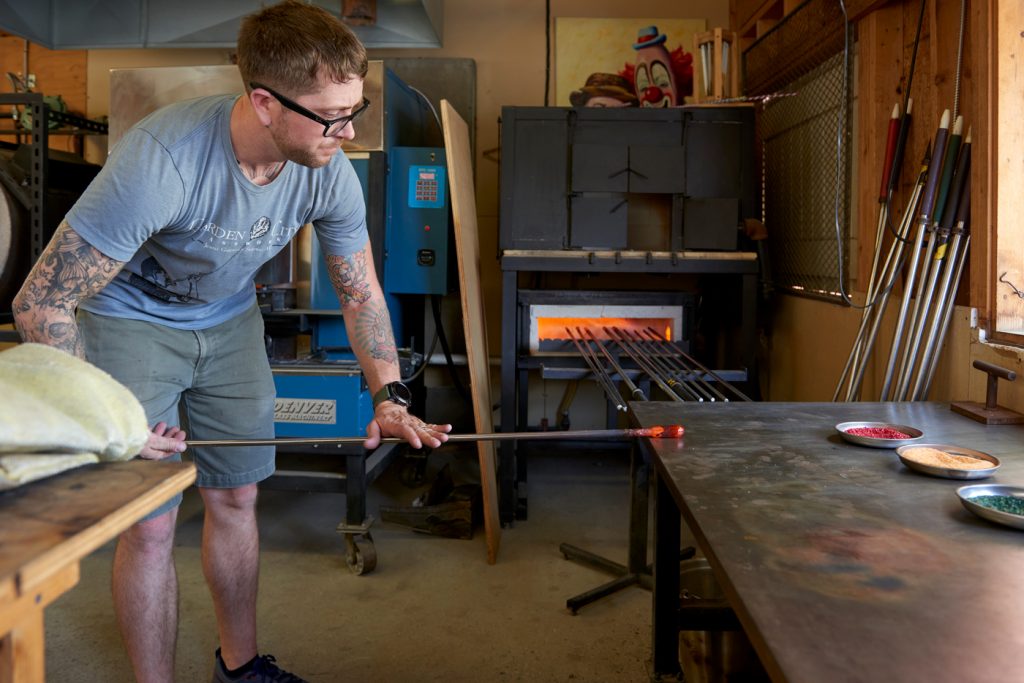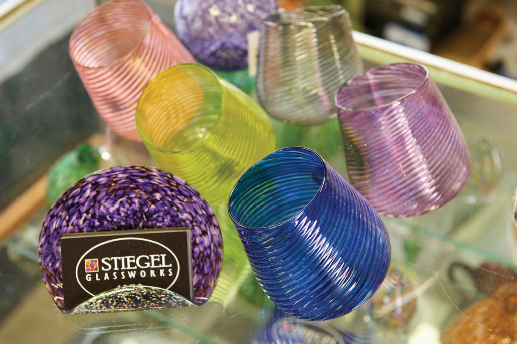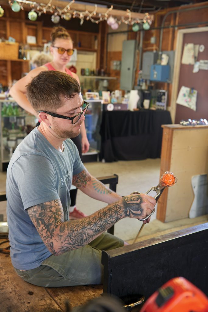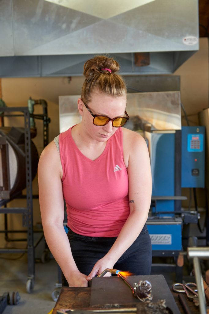 As for Hallie, the New Hampshire native has been involved in flameworking for nine years, first in Philadelphia and now in Manheim. “Glassblowing is what took me to Philadelphia,” she explains. “Covid is what brought me to Manheim,” she says of choosing to quarantine here in order to be close to her sister. “It’s so great to have this here,” she says of Stiegel Glassworks 1976. “I never went back to Philadelphia.”