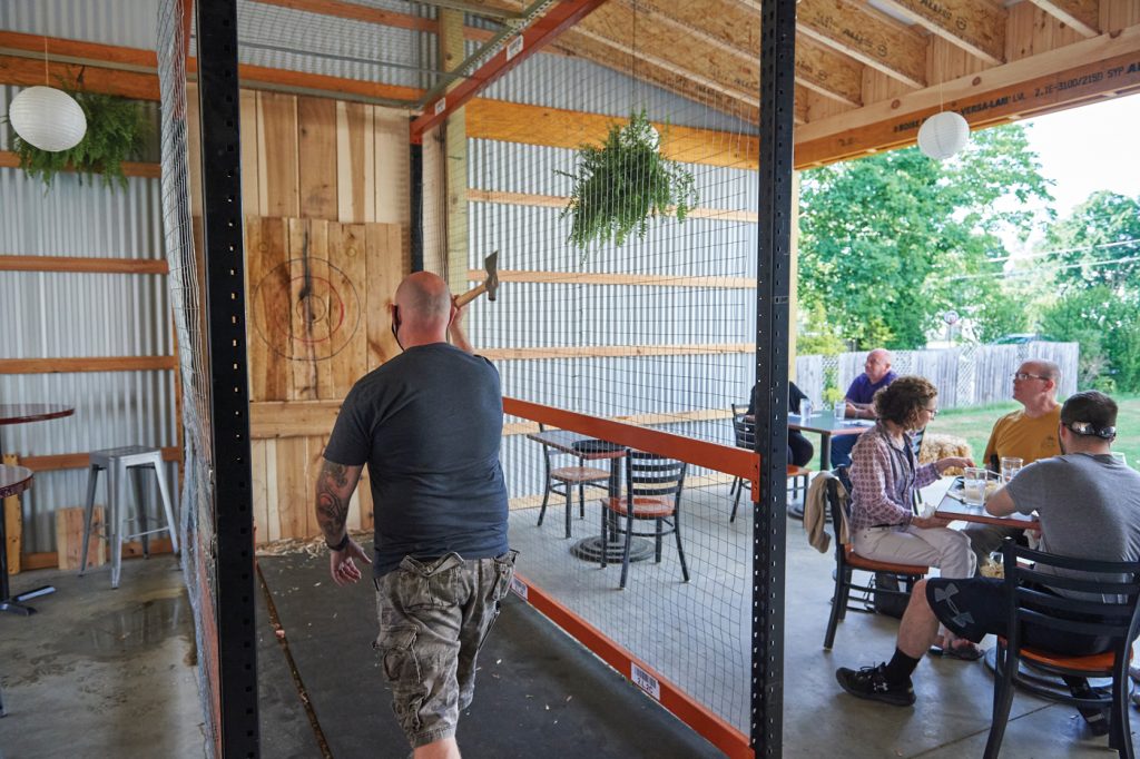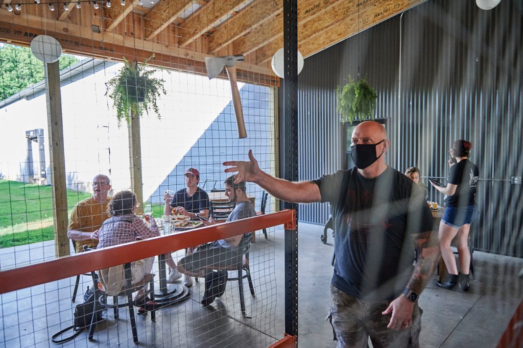 When a neighboring business vacated the building, Willie was offered the space. Not knowing what to do with an extra 3,500 square feet of space, he took notice that axe-throwing was becoming a thing. He and some friends checked out a venue in Philadelphia and came away convinced that axe-throwing would be the perfect complement to mead. “We had a blast,” he recalls. While patrons in Lancaster were developing a taste for Willie’s mead, the buzz about axe-throwing really helped to put Meduseld on the map.