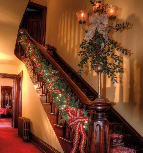 Guests for last year’s house tour were greeted by this festively decorated staircase.