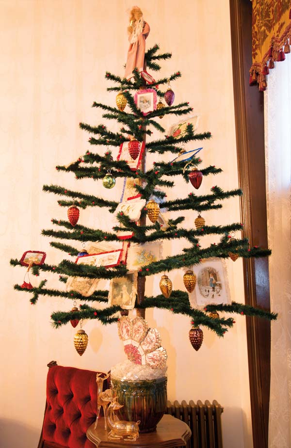 Jeanne then strolled down the street to Garth Gallery. She was sure the gallery’s owner, Cle Berntheizel, would have some ideas. Indeed, it was Cle to the rescue. One of his friends, Dawn Fisher (no relation to Jeanne), is an authority on period decorating for the holidays. “For as long as I’ve known Dawn, she’s been crazy about Christmas,” Cle says of their friendship that dates back to attending the York Academy of Art together. As an added bonus, Dawn is very familiar with the Victorian architecture for which Columbia is known. For a time, she managed Angela House, an antiques consignment shop that was located in a building that was formerly home to the town’s Women’s Club. At holiday time, she pulled out all the stops to entice shoppers to visit the store. “Every window had a tree in it that was decorated with angels,” she explains.