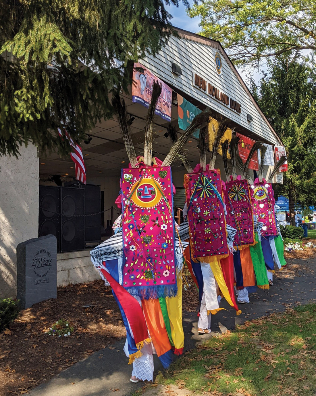 The Ayazamana dancers perform in front of the bandshell at New Holland Community Memorial Park. Photo courtesy of Latin American Alliance.