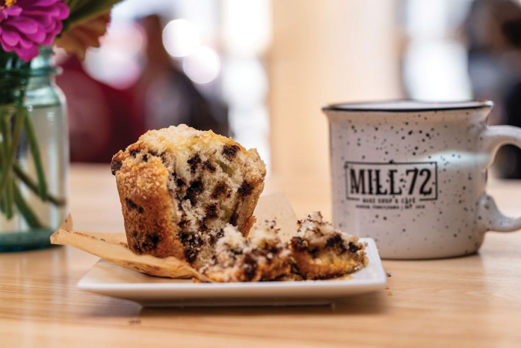 The menu features family favorites made with locally sourced ingredients. Baked goods and pastries fill a display case. Coffee drinks are prepared using Gerhart coffees; a special blend was crafted exclusively for Mill 72. (There are plenty of other choices for non-coffee drinkers.)