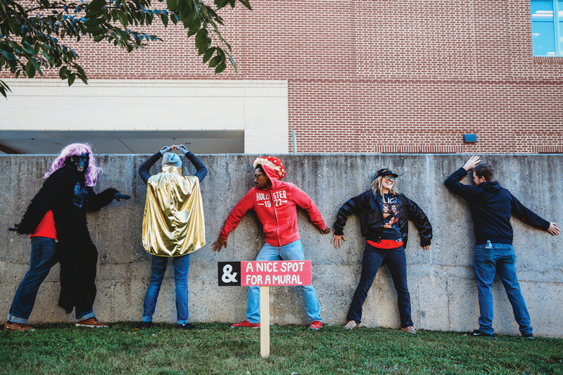 PCA&D artgarden installation, commissioned to mark the inauguration of the school’s new president, features a giant metallic ampersand and garden signs. Intended as “a symbol of forging, building and deepening connections, marking PCA&D’s re-introduction to the Lancaster community,” passersby and students are welcomed to write on the chalk signs. Michelle Johnsen Photography.