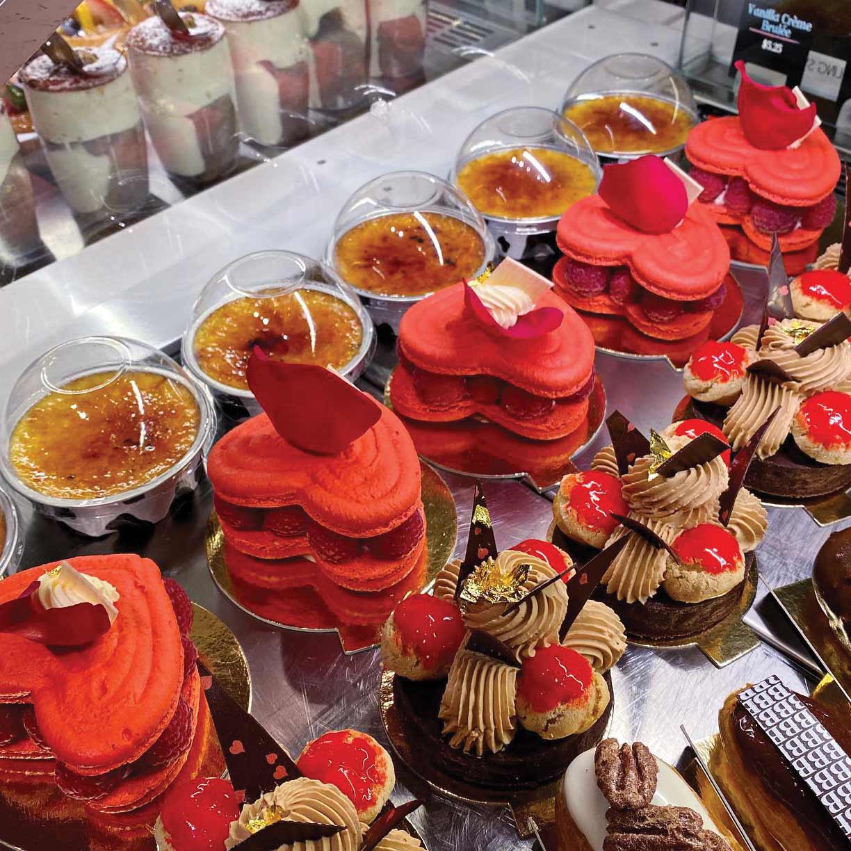 In November 2019, Cedric won the Neapolitan Delight edition of Food Network’s Chopped Sweets, so he knows what he’s doing when it comes to desserts! Some of the wonderful, chocolate-free specialty items available at Barberet include cream puffs filled with either vanilla or pistachio cream; Ruby, a raspberry mousse with a key lime center on top of yellow sponge cake; and Success, a hazelnut dacquoise with praline cream. A selection of stunning Les Macarons Parisiens include such flavors as raspberry, lemon, coffee, strawberry, pistachio, vanilla and lavender.