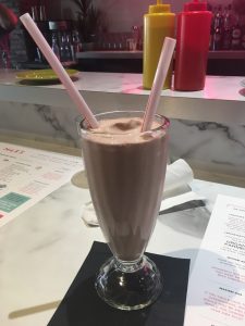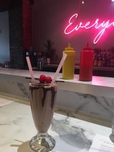 Boozy milkshakes and creative mixed drinks are also available for the adult crowd. I’d never had an alcoholic milkshake and was skeptical about whether it would taste good, but the “Twist and Shout” I tried was stellar. They also have another alcoholic milkshake called the “Booze Berry” that I’m looking forward to trying next time I get a chance, preferably with another order of onion rings and a smash burger.