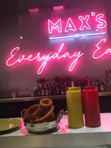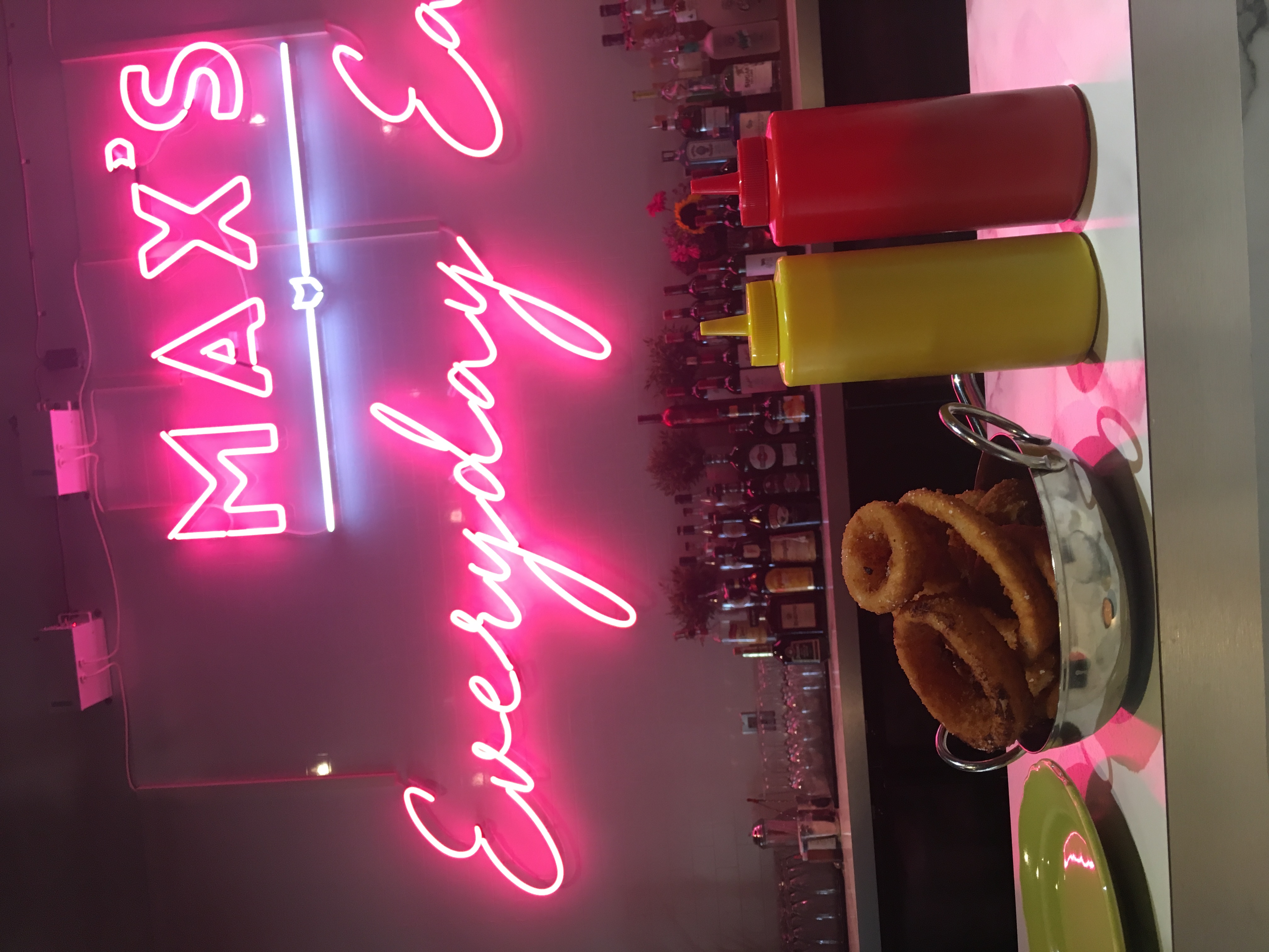 Named after the owners’ son Max, the concept of the restaurant was as clever as it was simple – create a restaurant which both children, like Max, and their parents would enjoy. The retro-diner atmosphere fits this vision nicely, offering a modern nostalgic atmosphere for adults and a fun boldly colored space for the restaurant’s younger customers. In the rear of the restaurant, a colorful cereal bar stocked with fruit loops and frosted flakes compliments this colorful aesthetic while offering yet another kid-friendly item to the menu. Between the cereal bar, waffles, onion rings, tater tots and smash burgers, any kid would be thrilled to eat at Max’s.
