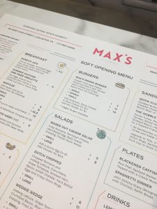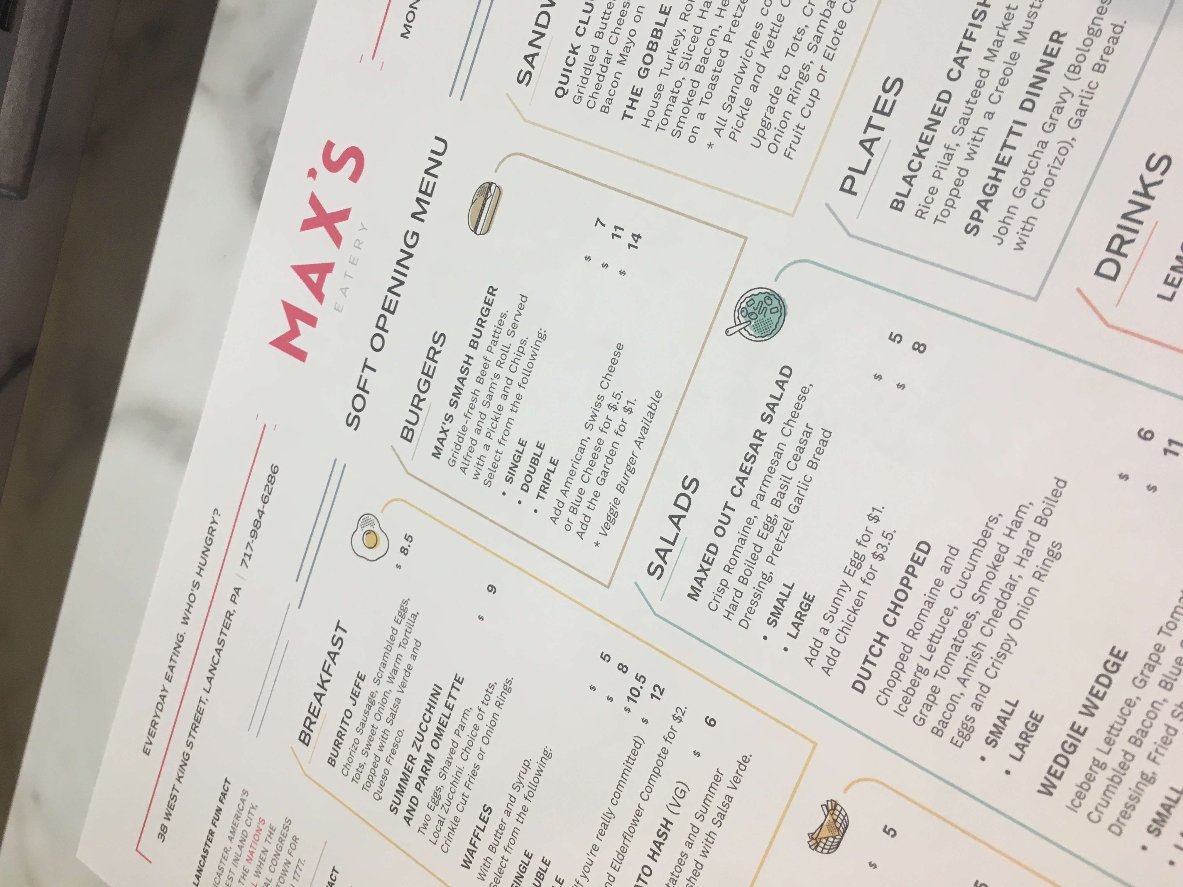 My disappointment, however, was mitigated when I learned there would be another restaurant opening in the same location. The new restaurant, called Max’s Eatery, was going to be an “everyday eatery,” according to its website, a space modeled after a classic diner with a modern twist. The website promised a variety of options on the soft-opening menu, everything from breakfast foods to blackened catfish.